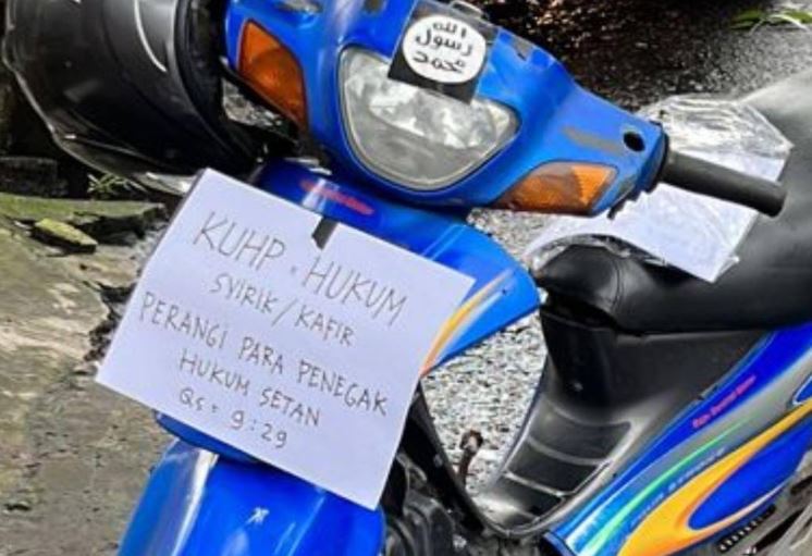 Sepeda motor yang ditinggalkan pelaku serangan bom bunuh diri di Polsek Astana Anyar Bandung | Twitter