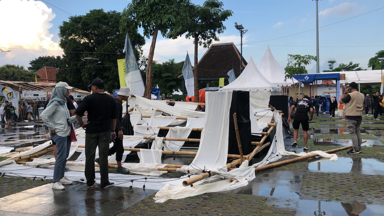SOLO, MettaNEWS – Hujan disertai angin memporak porandakan tenant FestivalĀ Mangkunegaran MakaN-MakaN di Pamedan Pura Mangkunegaran, Sabtu (27/4/2024) sore.