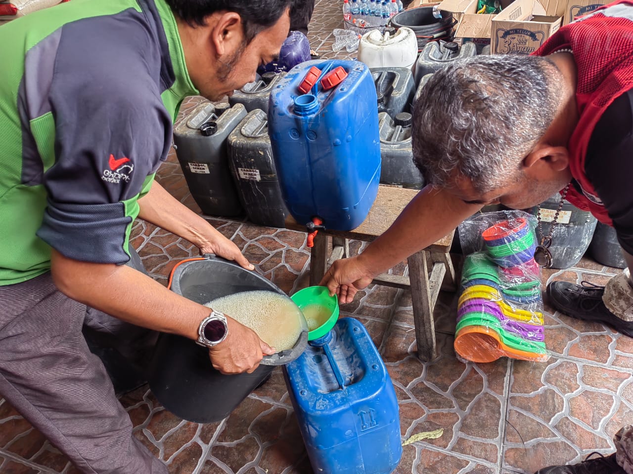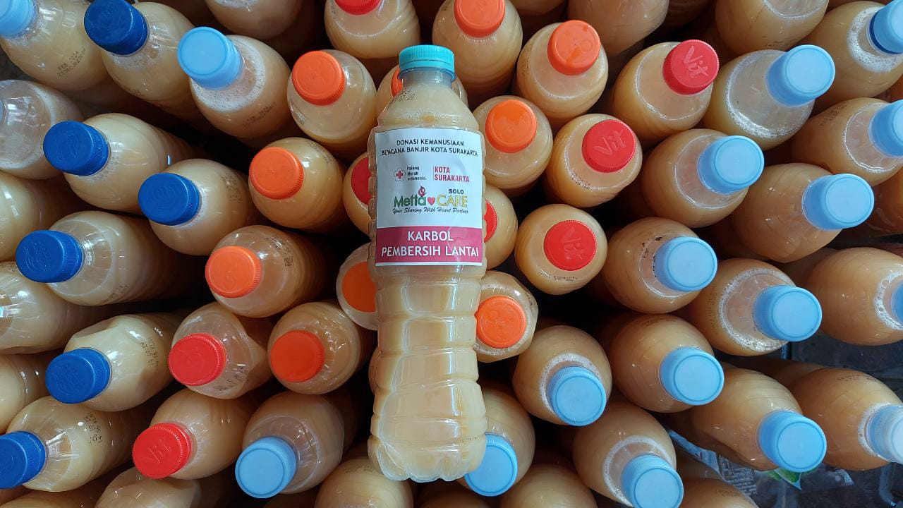 Melihat kondisi tersebut, Yayasan Metta CARE mendonasikan 1000 liter pembersih lantai bagi warga terdampak banjir Solo.