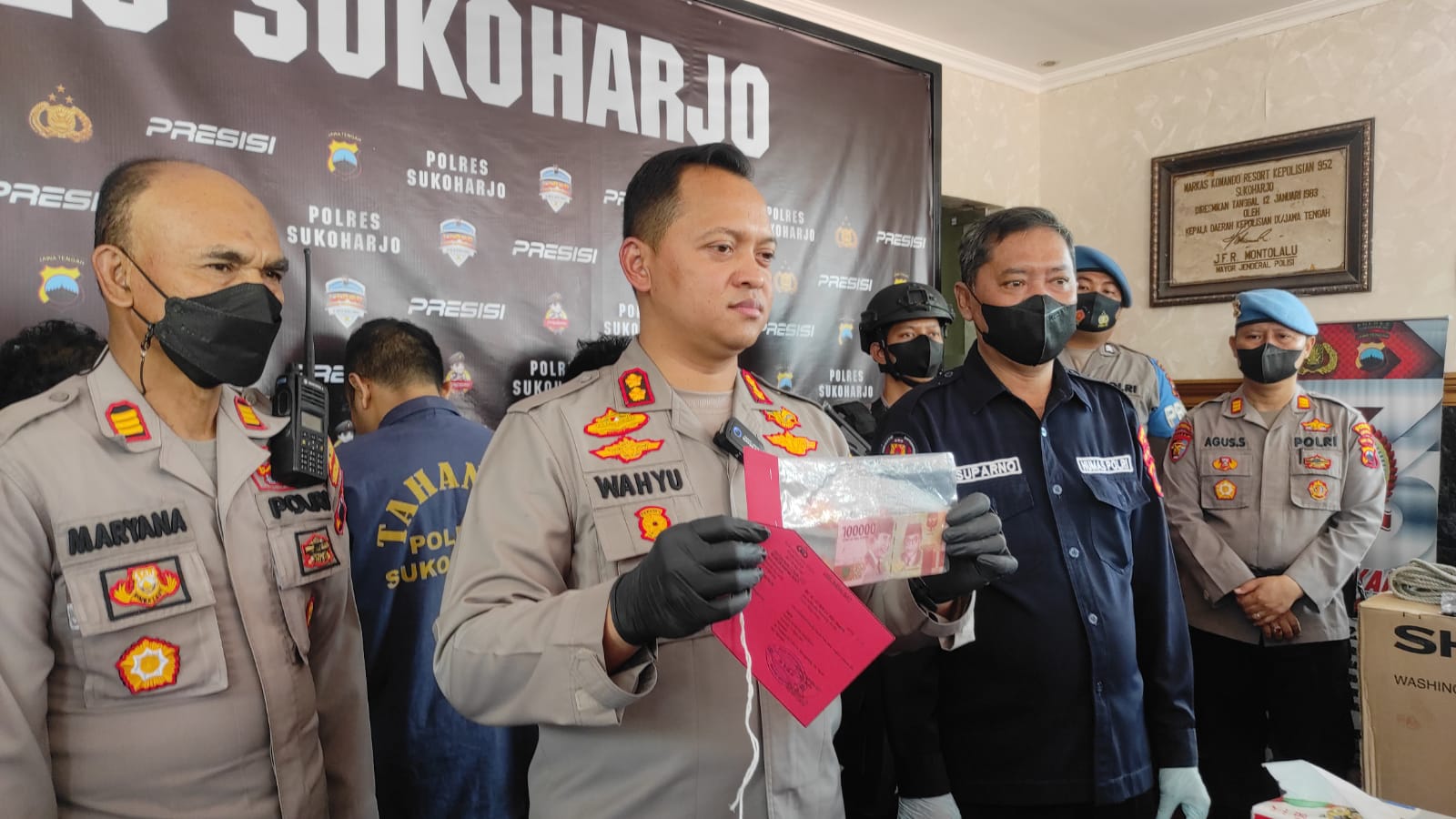 Kapolres Sukoharjo AKBP Wahyu Nugroho Setyawan menjelaskan, modus yang digunakan pelaku ialah melakukan transfer kemudian membayar biaya transferan dengan uang palsu.