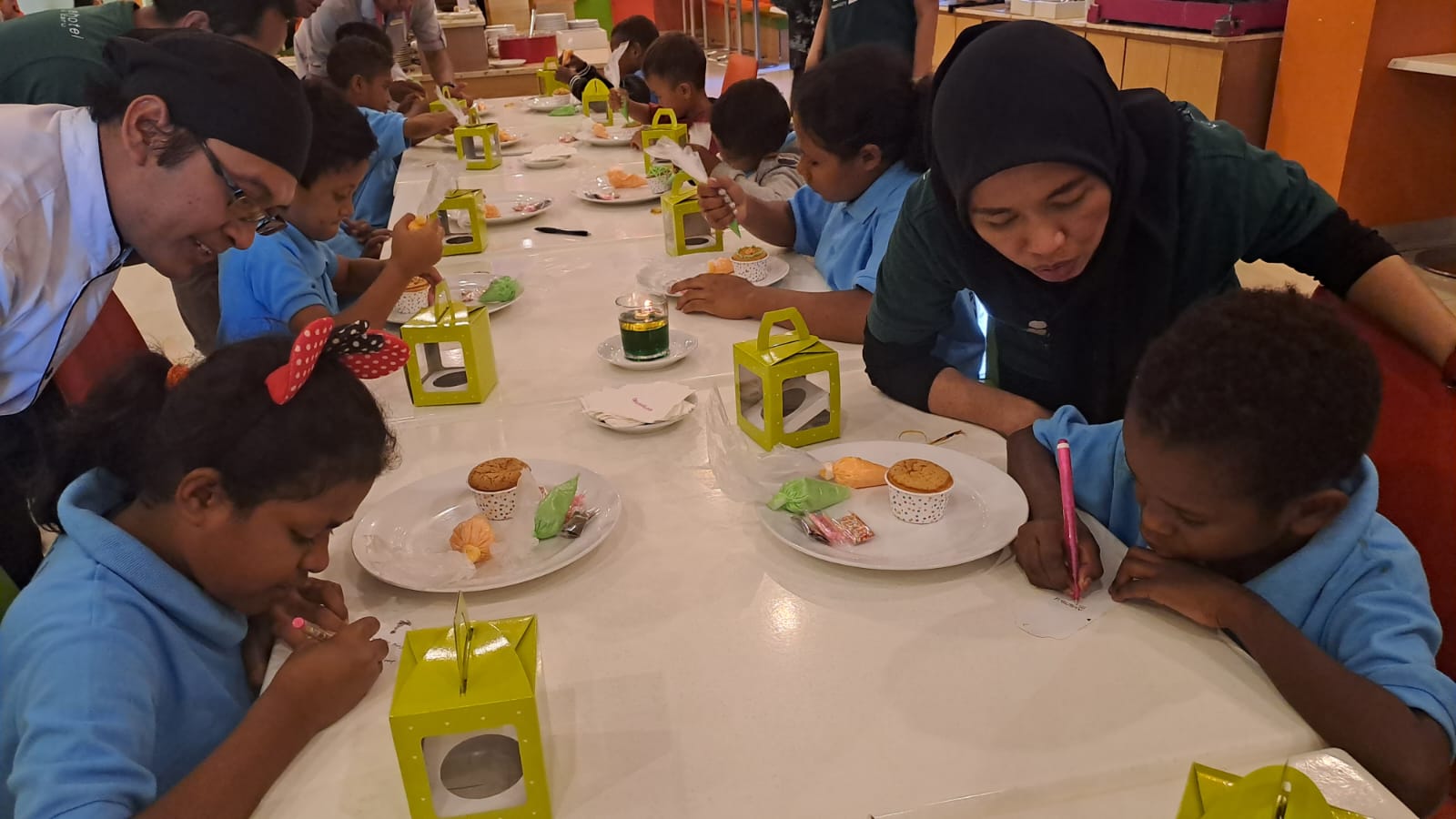 Menutup kegiatan penuh sukacita ini, adalah santap siang bersama di Lime Restaurant Favehotel Manahan Solo. Anak-anak juga bersukaria membuat cup cake harapan.
