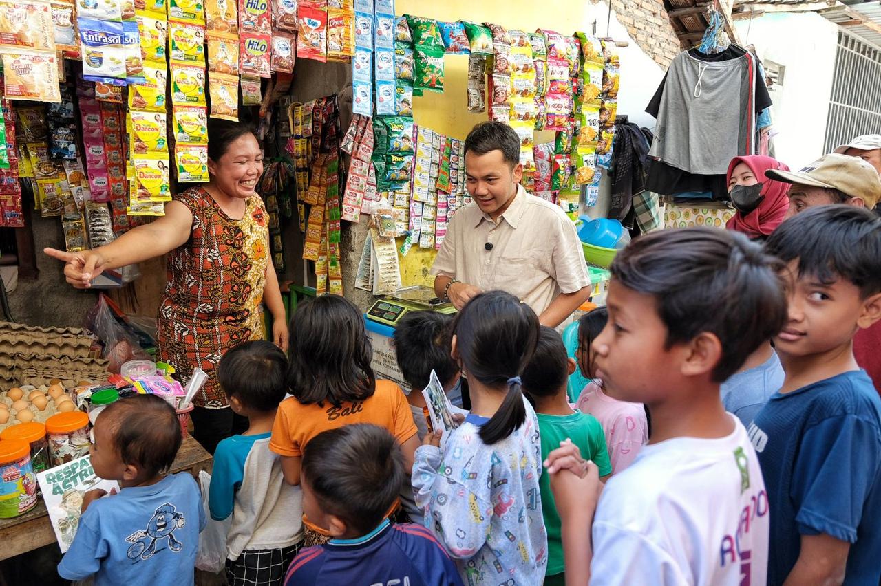 Mampir di warung jajan rumahan, Respati mentraktir anak-anak di kampung tersebut.