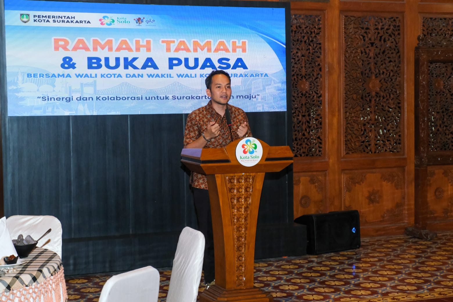 SOLO, MettaNEWS – Protokol dan Komunikasi Pimpinan (Prokompim) Kota Surakarta mengadakan ramah tamah dan buka puasa bersama rekan-rekan wartawan yang biasa meliput di Balaikota. Buka bersama dengan Wali Kota Solo Respati Ardi dan Wakil Wali Kota Astrid Widayani ini berlangsung di Pendopo Loji Gandrung, Kamis (13/3/2025) sore.