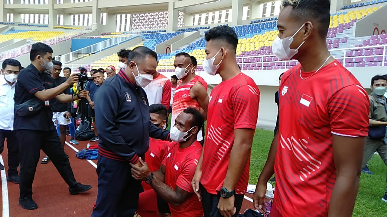 Di Stadion Manahan beberapa atlet para games tengah berlatih. Di sela-sela peninjauan, Menpora Amali menyapa, memberikan arahan dan semangat pada atlet para atletik tersebut.