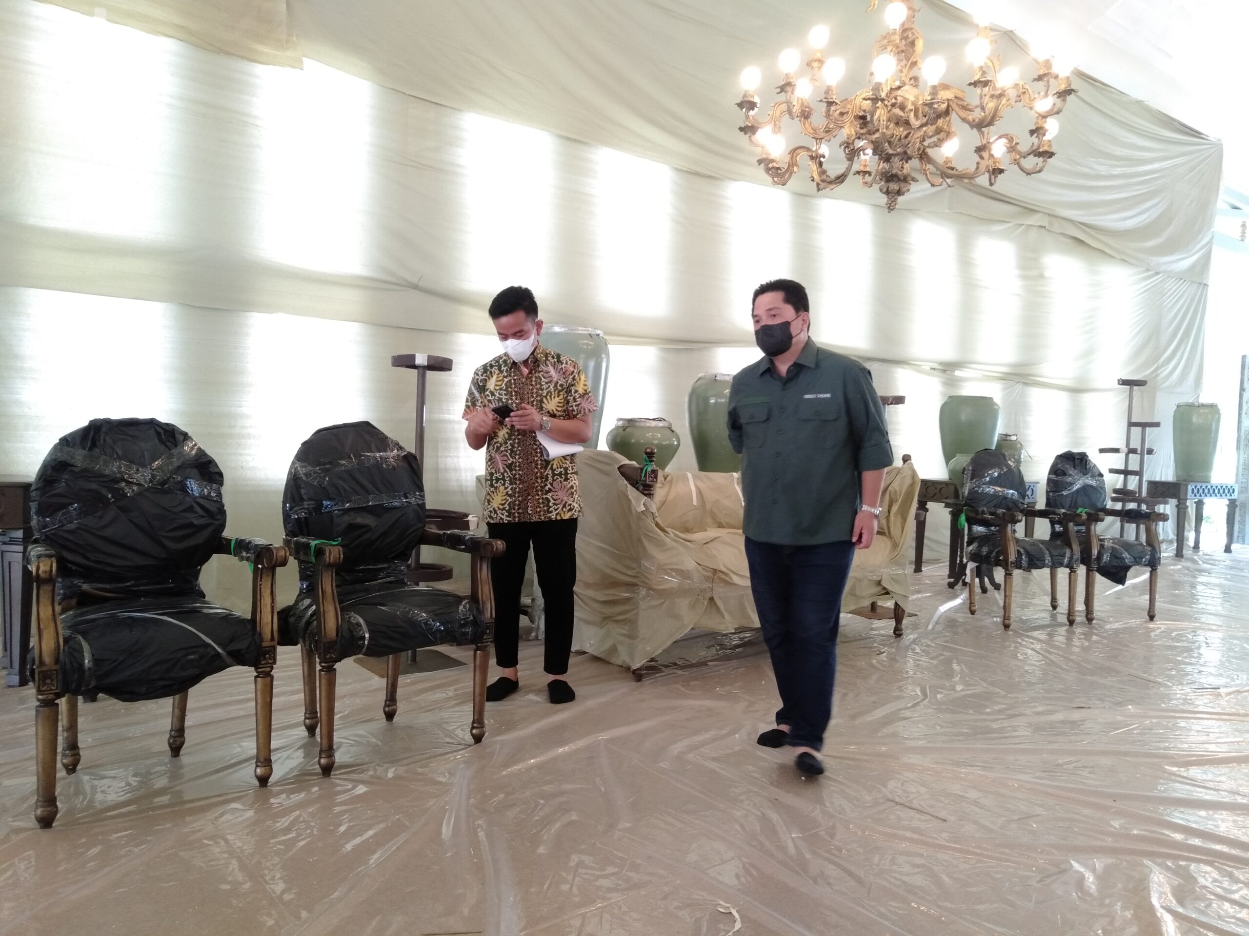 SOLO, MettaNEWS – Menteri BUMN Erick Thohir meninjau persiapan pernikahan Kaesang dan Erina, di Pura Mangkunegaran, Kamis (8/12/2022).