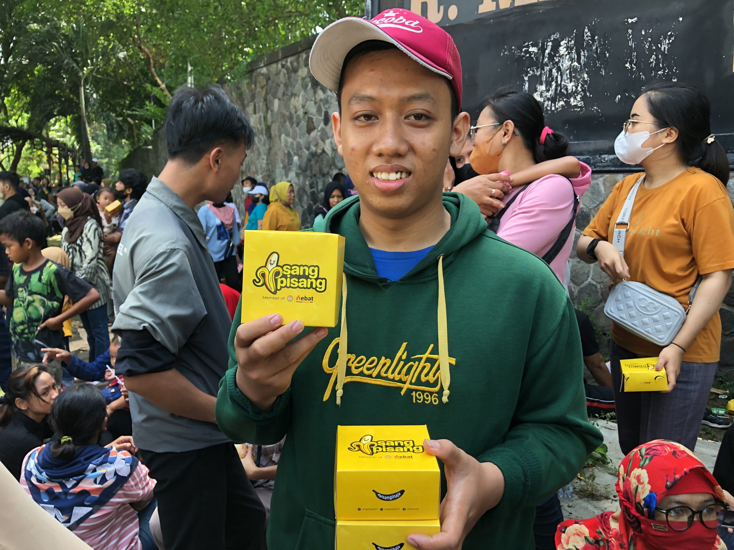 “Wah ini perjuangannya luar biasa buat dapat Sang Pisang ini tadi sampai desak-desakan. Saya datang juga khusus untuk ini (makanan),” ujar pria 21 tahun itu.