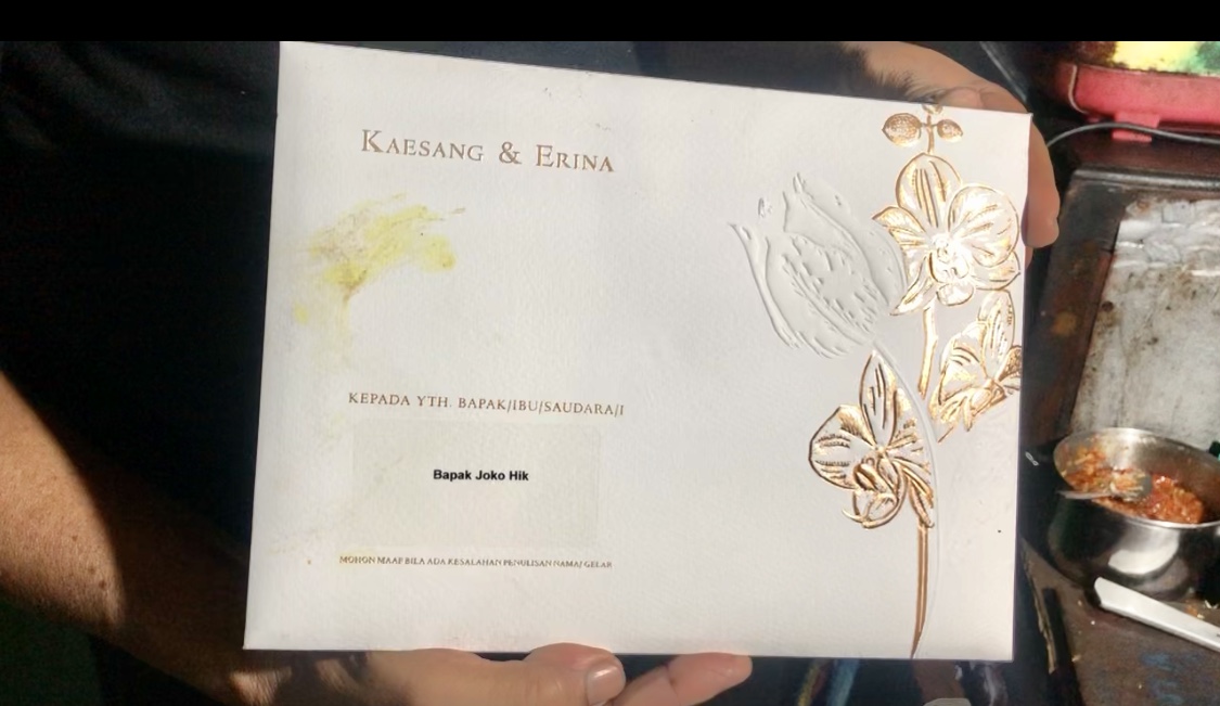 Dikatakannya, undangan pernikahan berwarna krem itu diantar langsung oleh salah seorang karyawan gedung pernikahan milik keluarga Presiden Jokowi ke tempatnya berdagang.