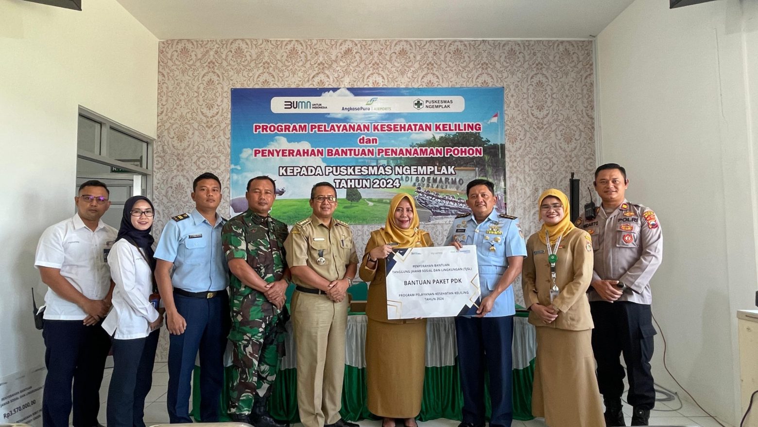 “Atas nama Pemerintah Kecamatan Ngemplak dan masyarakat, Saya sangat berterima kasih kepada PT Angkasa Pura I Bandara Adi Soemarmo atas seluruh bantuan yang diberikan. Melalui program kesehatan