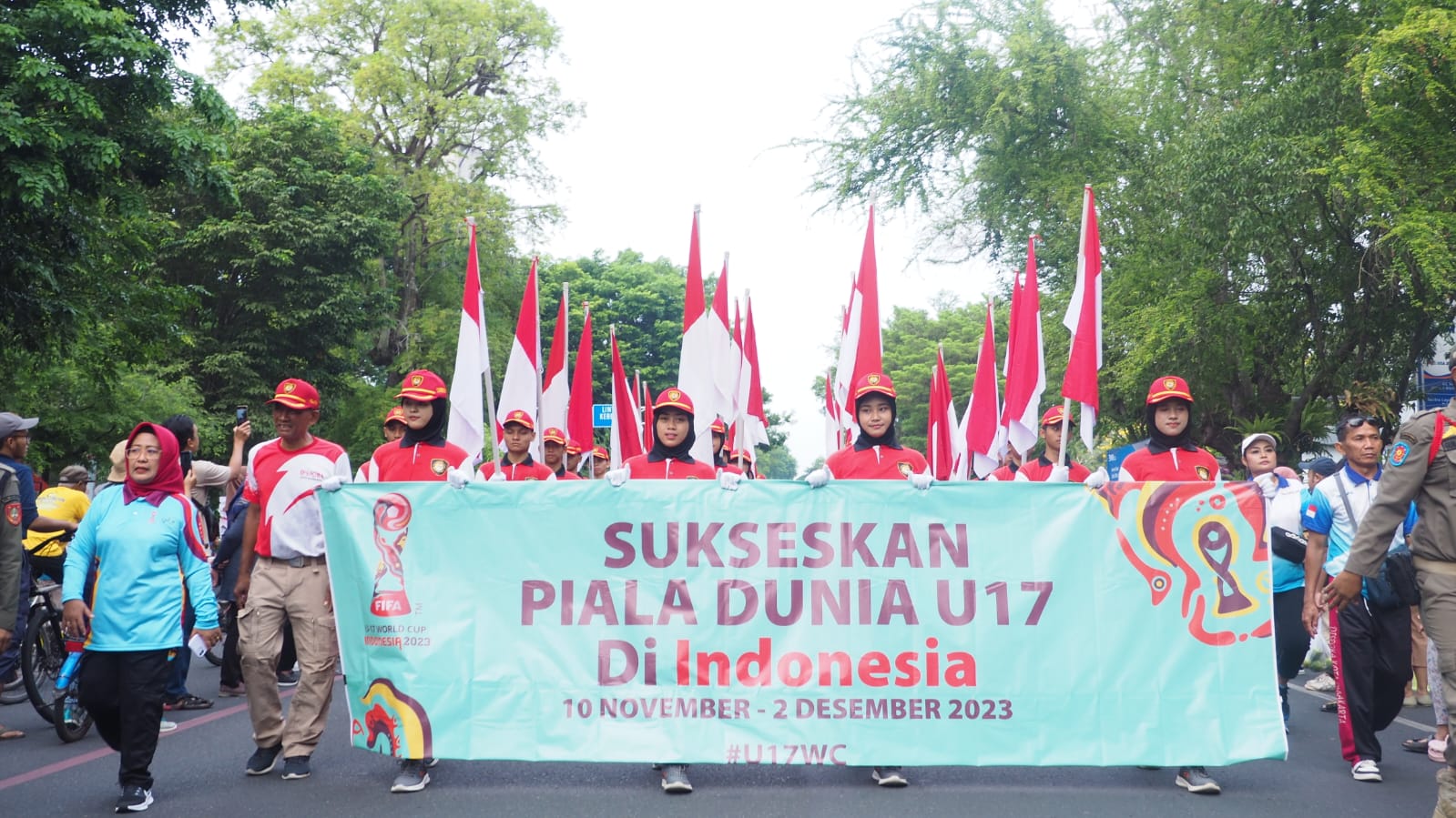 SOLO, MettaNEWS – Kirab trophy experience (trofi tur) Piala Dunia U-17 2023 di Kota Solo, Jawa Tengah Minggu (5/11/2023) pagi sangat kental akan nuansa tradisional.
