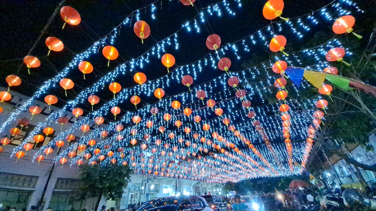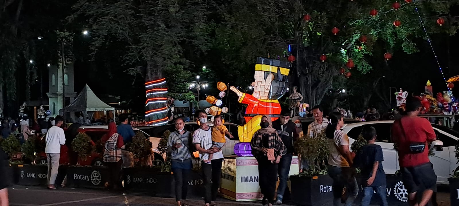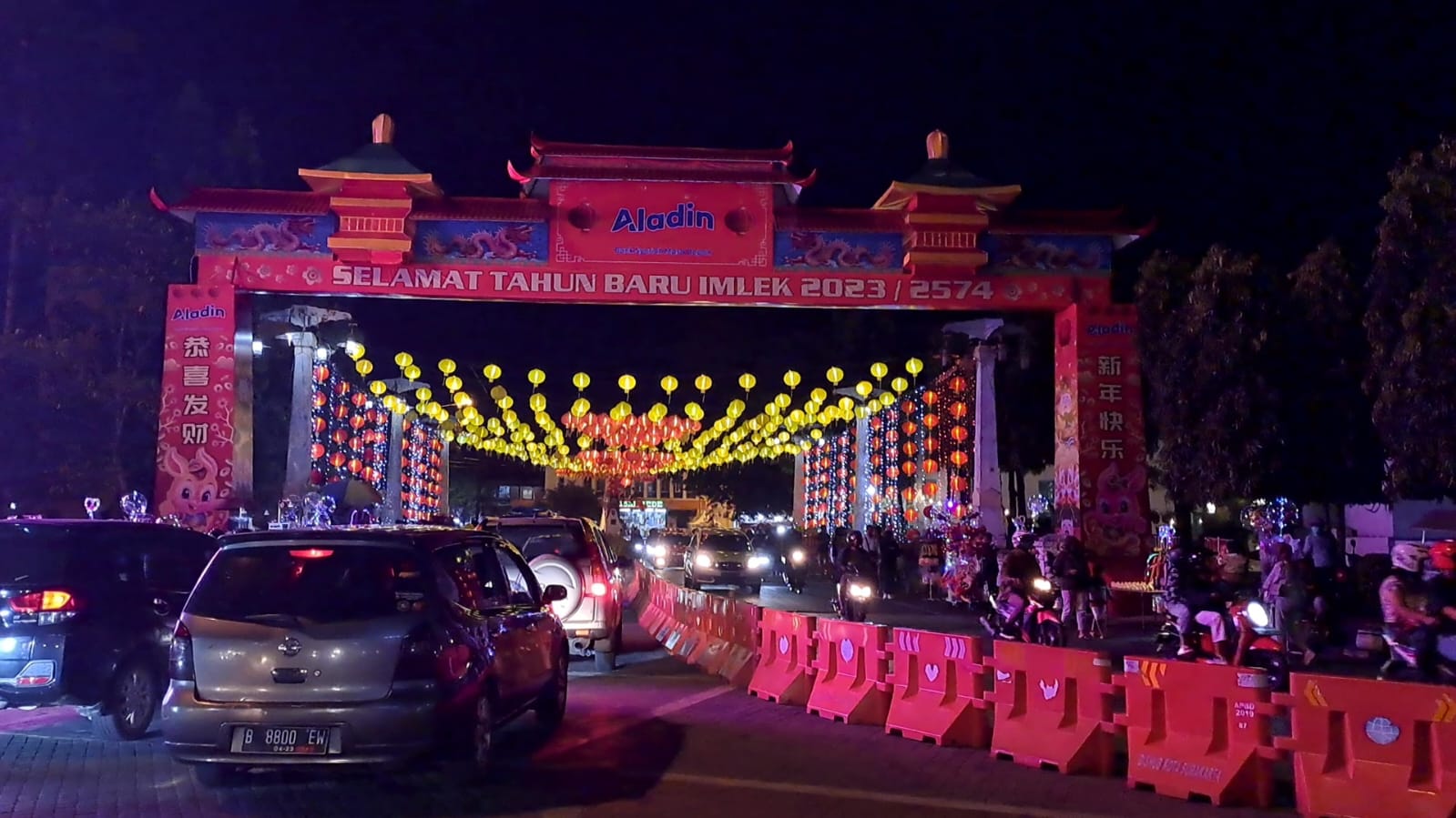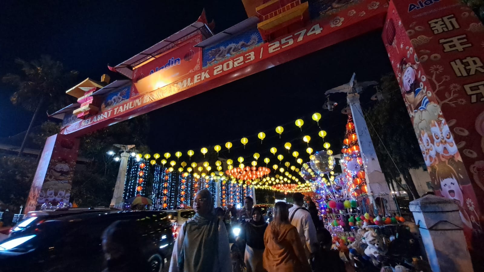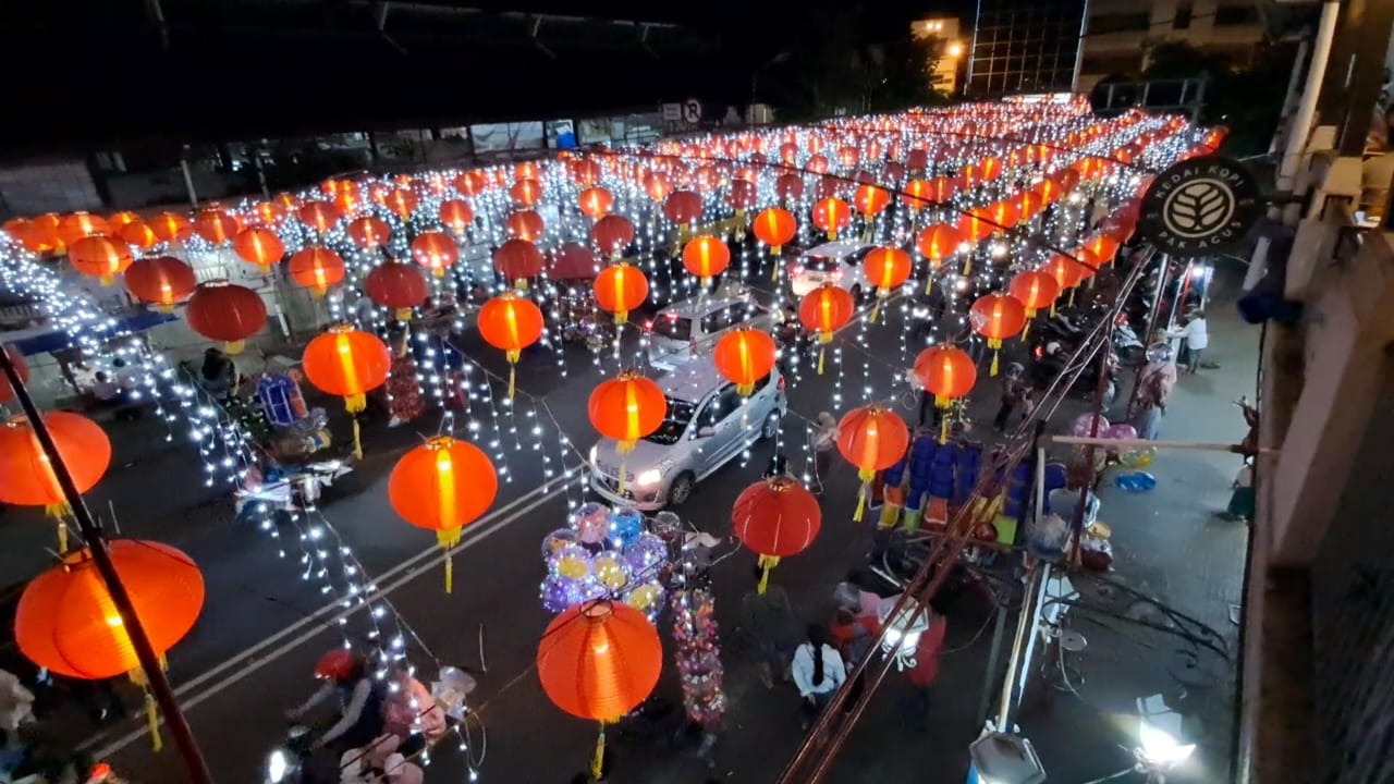 Ribuan lampion bulan merah menyala dipotret dari lantai 2 Pasar Gede Solo, menerangi lalu lalang kendaraan di bawahnya, Sabtu (7/1/2023)Lampion bulan merah dan lampu gantung berwarna putih dipotret dari parkiran Pasar Gede Solo, Sabtu (7/1/2023)Warga padati lampion Jembatan Kali Pepe yang menyala dengan paduan 3 warna, Sabtu (7/1/2023) malamGapura Imlek berlatar belakang ribuan lampion bulan merah menerangi kendaraan yang melintas ini di potret dari Bundaran Jalan Jenderal Sudirman Solo, Sabtu (7/1/2023)Gapura Imlek 2023/2574 di Jembatan Kali Pepe Solo tampak dari bawah, Sabtu (7/1/2023)Hiruk pikuk pengunjung lampion di area Plaza Balai Kota Solo dan Jalan Jenderal Sudirman ketika malam hari, Sabtu (7/1/2023)