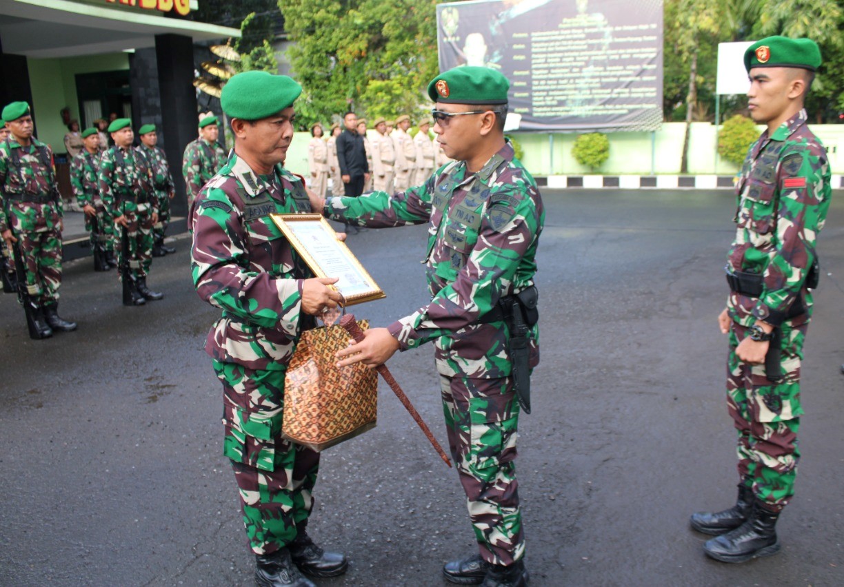 DENPASAR, MettaNEWS – Dandim 1611/Badung Kolonel Inf Dody Triyo Hadi, S.Sos., M.Si. memberikan penghargaan kepada Babinsa Koramil 161105/Abiansemal Peltu Dewa Agung Putra Ardyasa setelah pelaksanaan Upacara Bendera bertempat di Lapangan Makodim 1611/Badung Jl. Sugianyar No. 6 Kota Denpasar. Senin (24/10/22).