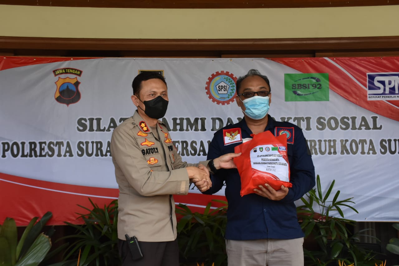 Wakapolresta Solo AKBP Gatot Yulianto mengatakan ada pembagian sembako dibagikan kepada tiga serikat buruh di kota Solo yakni SPSI, SBSI 1992 dan SPN.