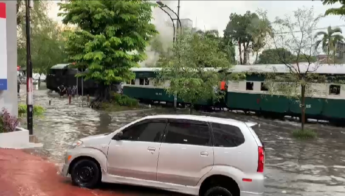 Bahkan kereta uap Jaladara yang beroperasi pada siang itu tampak menembus genangan air tinggi ketika melintas di depan Sriwedari.