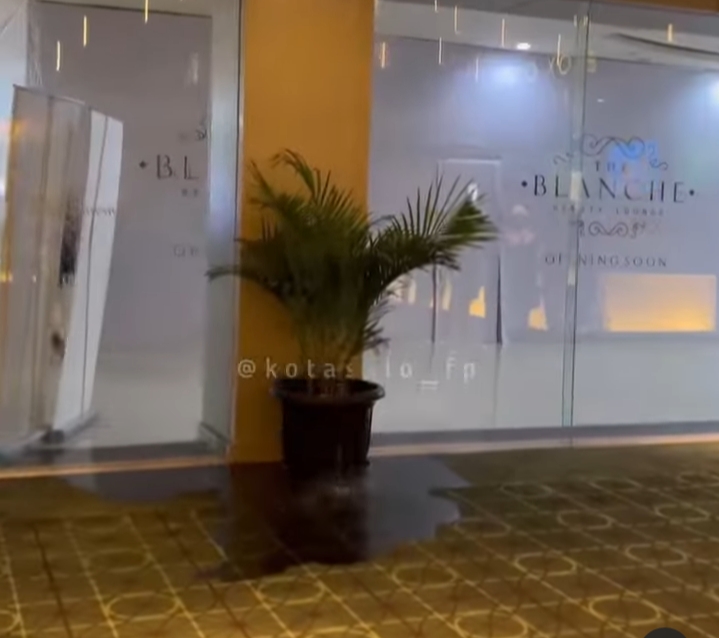 Di foodcourt sendiri juga tampak petugas kebersihan mal dengan sigap menangani kebocoran yang menggenang di lantai foodcourt.