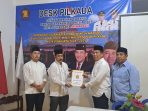 SOLO, MettaNEWS – Heru Cipto Nugroho menyerahkan berkas pendaftaran persyaratan bakal calon wakil wali kota ke kantor DPC Gerindra Solo, Selasa (18/6/2024)
