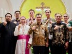 SEMARANG, MettaNEWS – Gubernur Jawa Tengah Ahmad Luthfi menyapa jemaat misa Malam Natal di Gereja Katedral Santa Perawan Maria Ratu Rosario Suci,