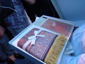 SOLO, MettaNEWS – Suvenir cantik berupa seperangkat alat salat menjadi buah tangan pada pengajian jelang pernikahan putra bungsu Presiden Joko Widodo diadakan