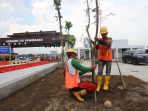 MettaNEWS – Pekerja membawa puluhan bahkan mencapai seratusan pohon untuk menghidupkan kembali suasana rindang dan sejuk kawasan gerbang tol Prambanan. Yang dahulu