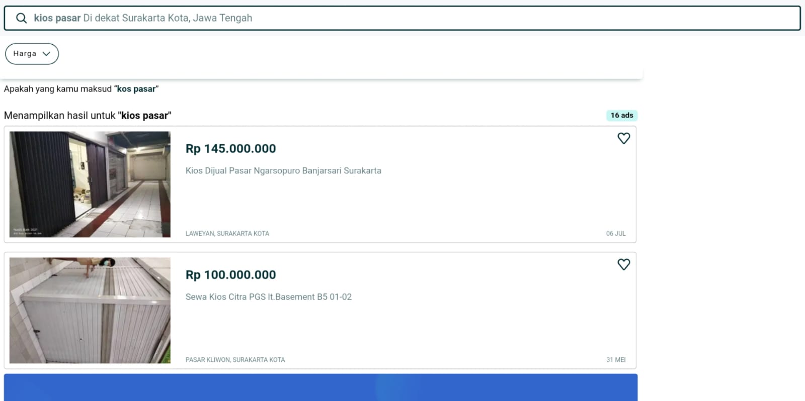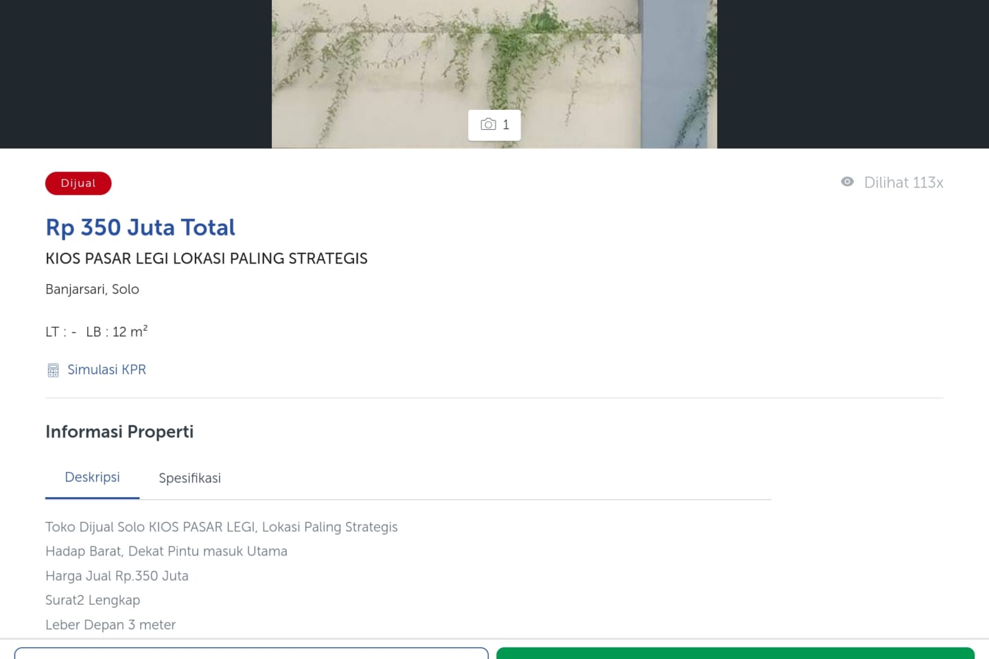 Penelusuran mettanews.id dengan memasukan kata kunci di google ‘jual kios pasar Solo’ muncul tiga kios yang dijual di situs jual beli.