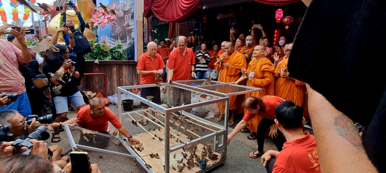 Prosesi pelepasan ratusan burung dilakukan di depan Kelenteng Tien Kok Sie. Ratusan umat tridharma menyaksikan ritual ini. Sementara di waktu yang bersamaan, ratusan bibit ikan lele juga dilepas di Sungai Bengawan Solo.