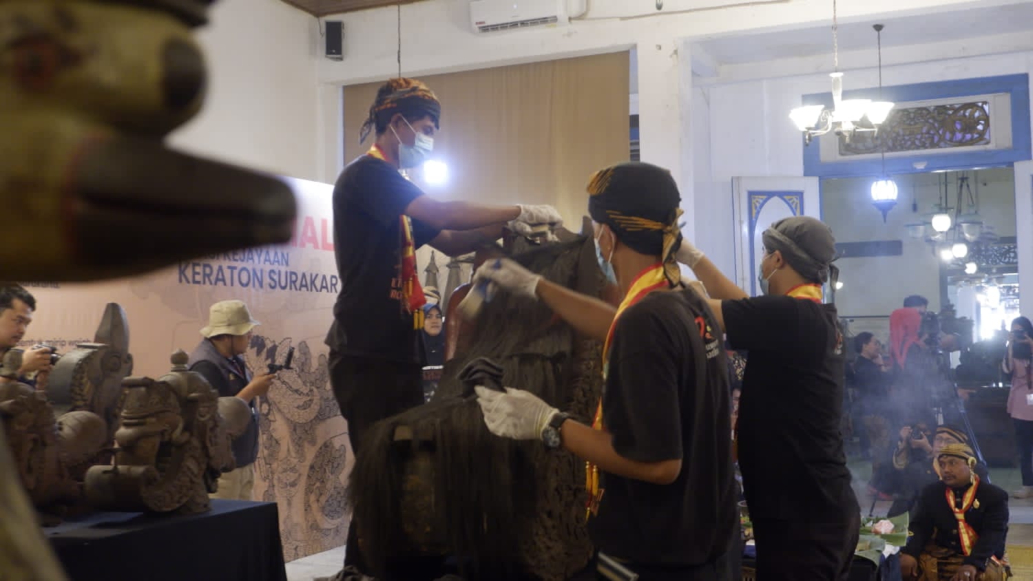 Prosesi do’a saat konservasi Canthik Rajamala di Museum Radya Pustaka Solo, Selasa (24/10/2023) | Magang UNS / Kahfi Harahap