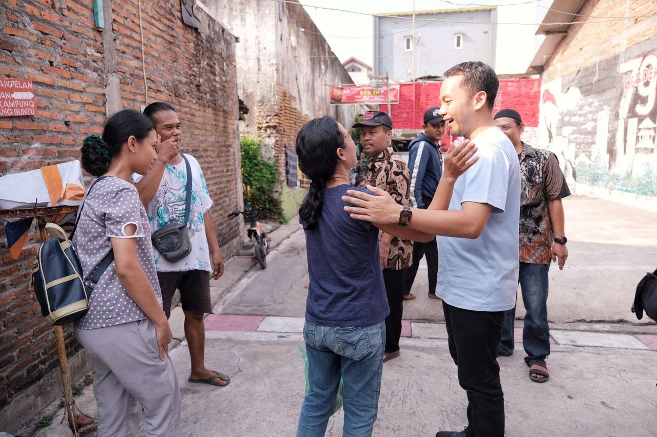 Respati berjalan dari ujung gang untuk berjumpa dengan ratusan warga Yosodipuran.