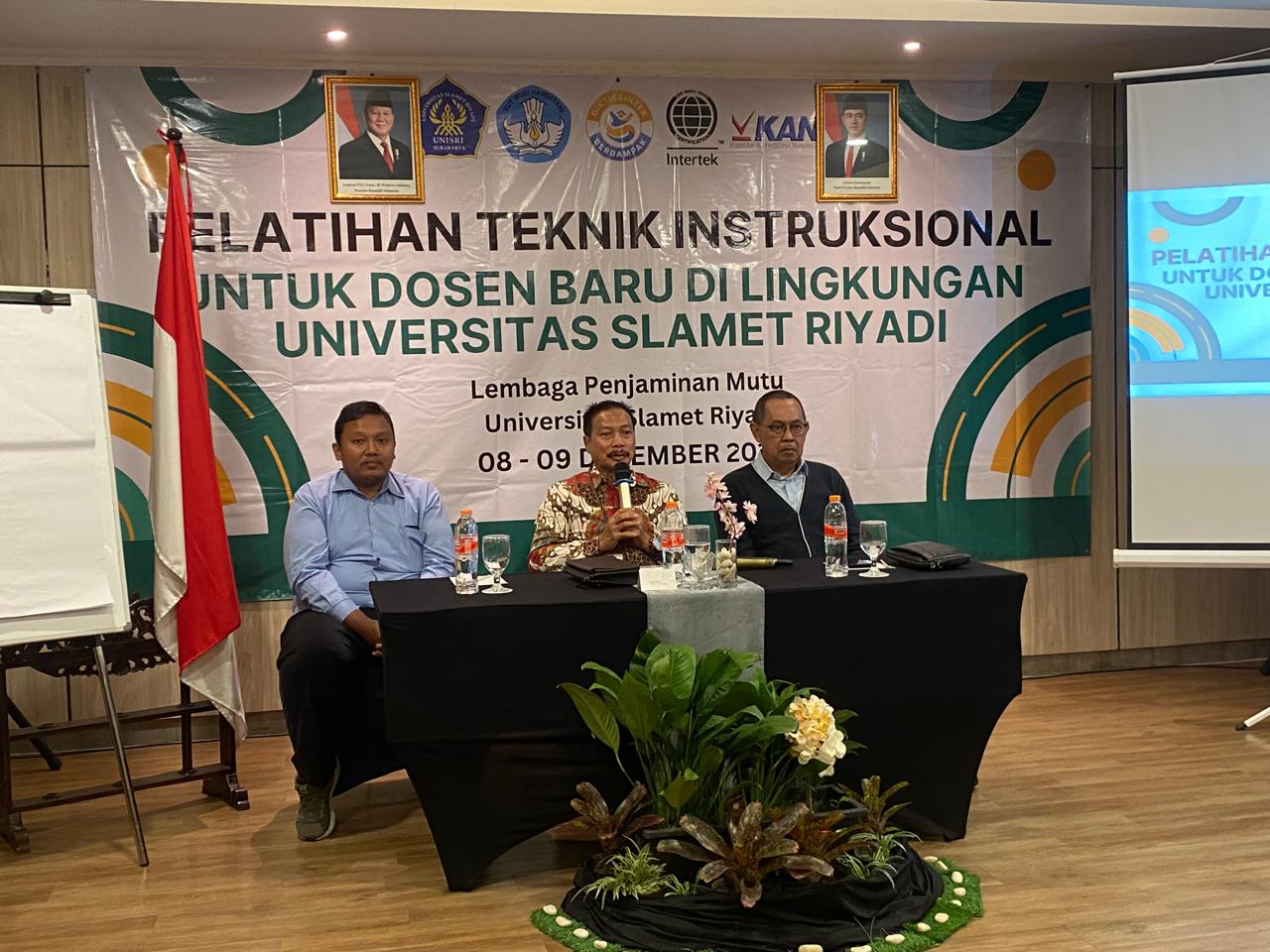 SOLO, MettaNEWS – Lembaga Penjamin Mutu (LPM) Universitas Slamet Riyadi (Unisri) Surakarta menggelar Pelatihan Teknik Instruksional bagi dosen baru Unisri, yang berlangsung selama dua hari di Solia Hotel Solo, Senin–Selasa (8–9/12/2025). Sebanyak 20 dosen baru mengikuti kegiatan yang dirancang untuk memperkuat kompetensi pedagogik dan kualitas proses pembelajaran di lingkungan universitas.