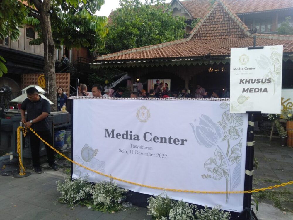 SOLO, MettaNEWS – Panitia pernikahan Kaesang Pangarep dan Erina Gudono menyiapkan media center untuk awak media yang melakukan tugas peliputan.
