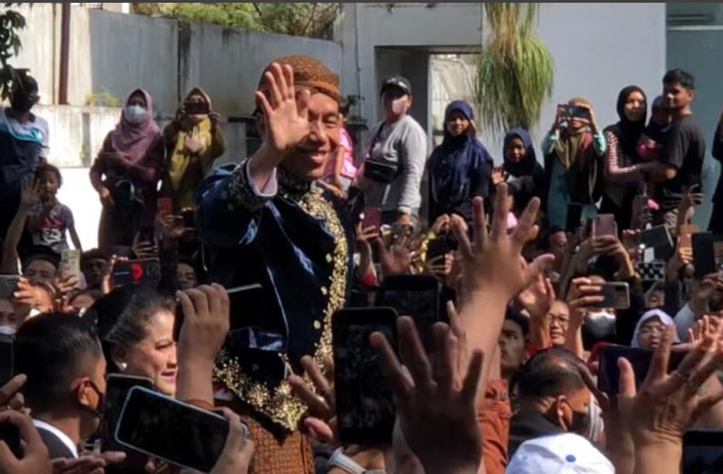 Sebelumnya Presiden Jokowi nampak melambaikan tangan dan membagikan suvenir ke warga. Namun lantaran banyaknya warga yang mulai maju kedepan untuk mengabadikan momen ini, lambaian Presiden Jokowi tenggelam di antara banyaknya warga tersebut.