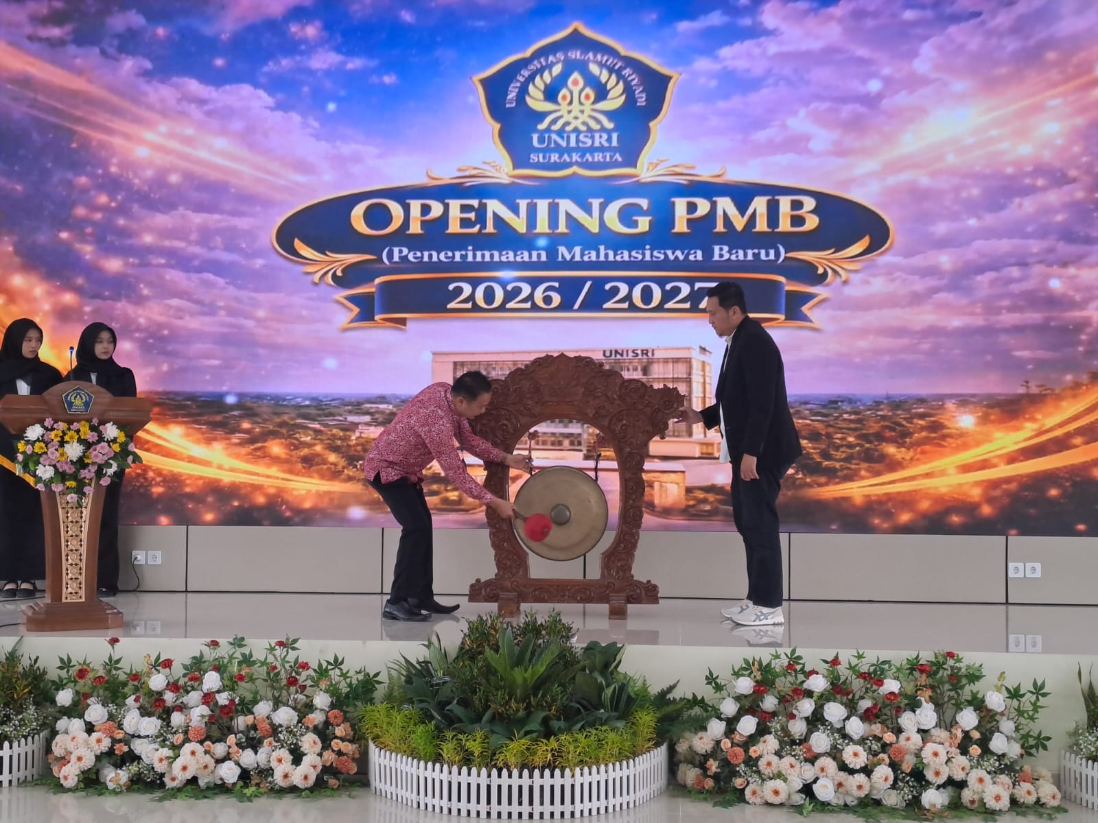 Grand Opening PMB ini dihadiri oleh jajaran pimpinan universitas, dosen, karyawan, yayasan, serta perwakilan unit kegiatan mahasiswa sebagai simbol kesiapan Unisri menyambut calon mahasiswa baru tahun akademik 2026/2027.