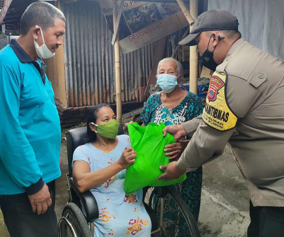 SOLO, MettaNEWS – Anggota Bhayangkara Pembina Keamanan dan Ketertiban Masyarakat (Bhabinkamtibmas) Polsek Pasar Kliwon Polresta Solo berikan bantuan sosial berupa Sembako kepada warga yang menyandang disabilitas di daerah Joyosuran, Pasar Kliwon, Solo Minggu (05/6/22)