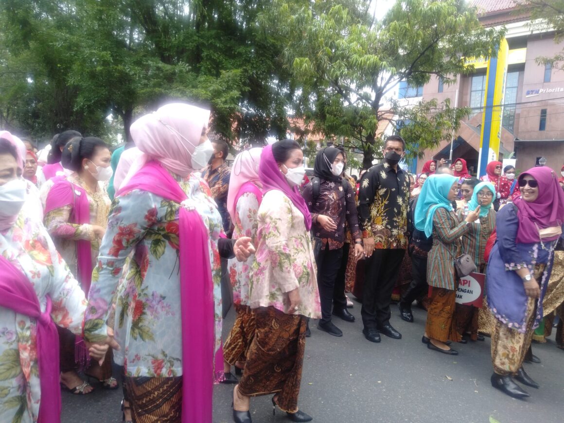 Solo, MettaNEWS – Sebanyak 35 Perempuan Mandiri menjadi cucuk lampah atau pembuka jalan parade Berkebaya Bersama Ibu Negara, yang diadakan oleh Himpunan Ratna Busana Surakarta, Minggu (2/10/2022).