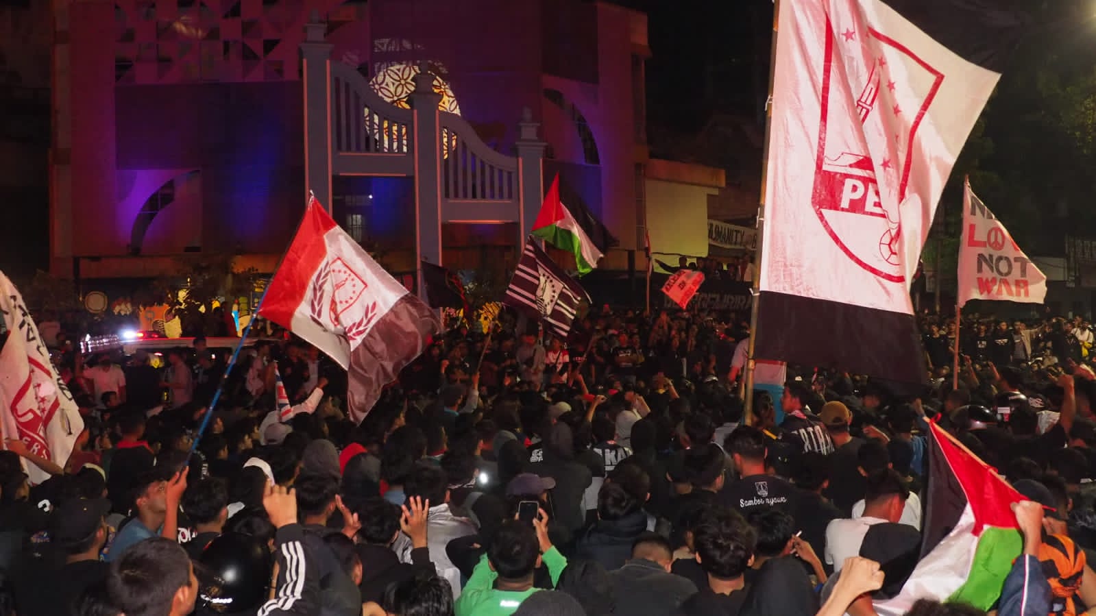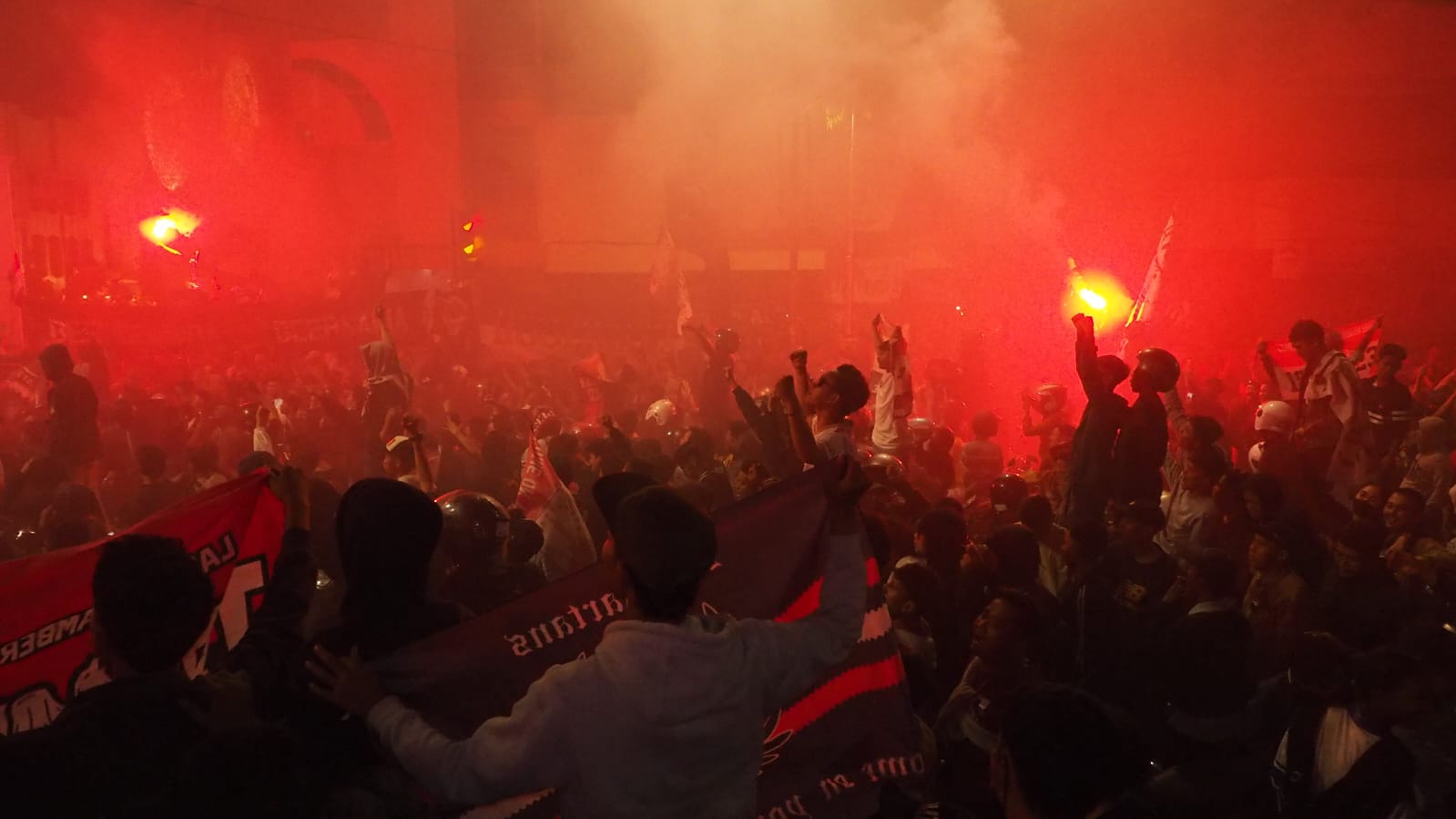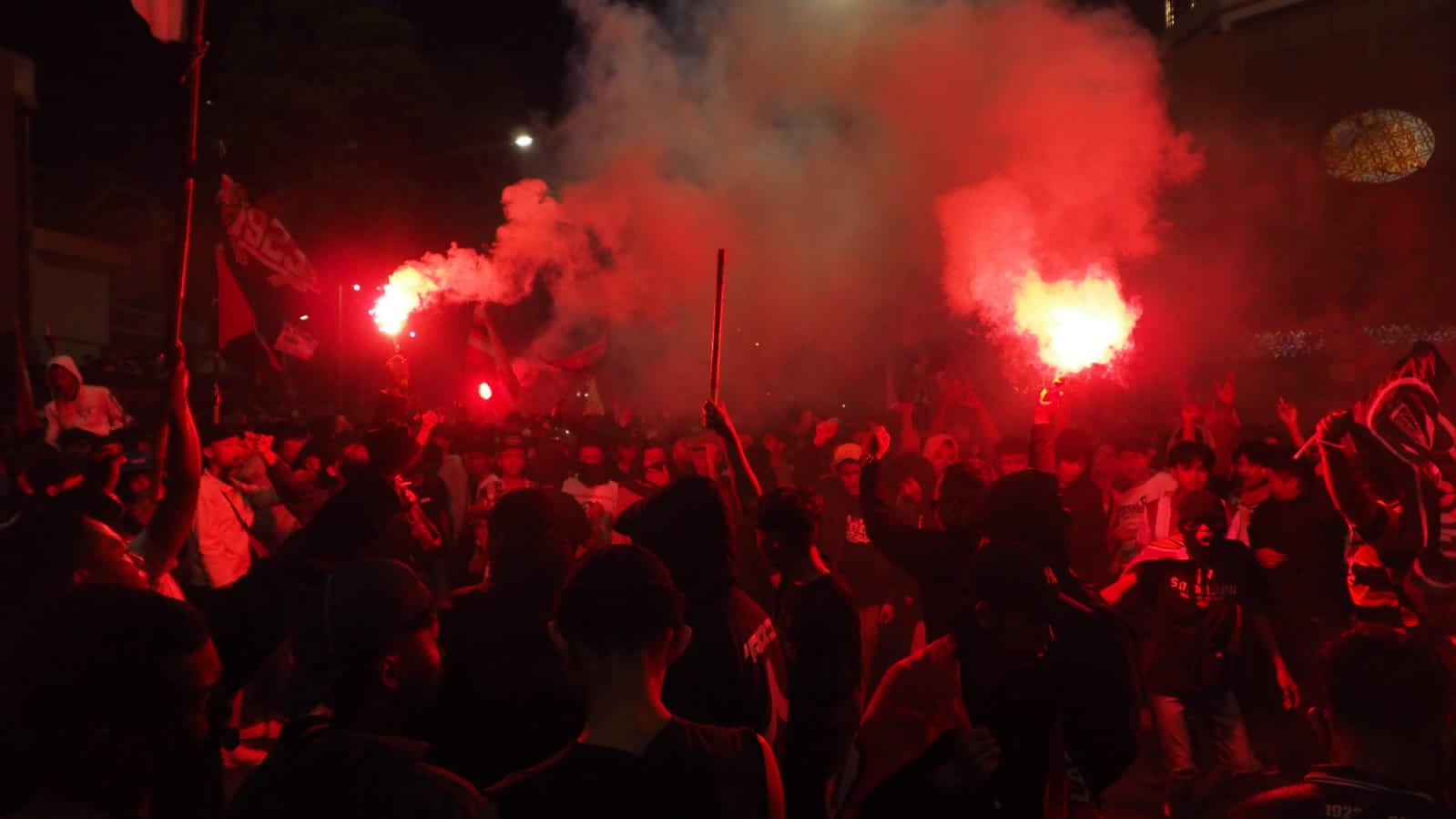 Pantauan Mettanews.id, para suporter datang secara bergerombol mulai pukul 19.00 WIB. Semakin malam jumlah suporter yang datang semakin bertambah.