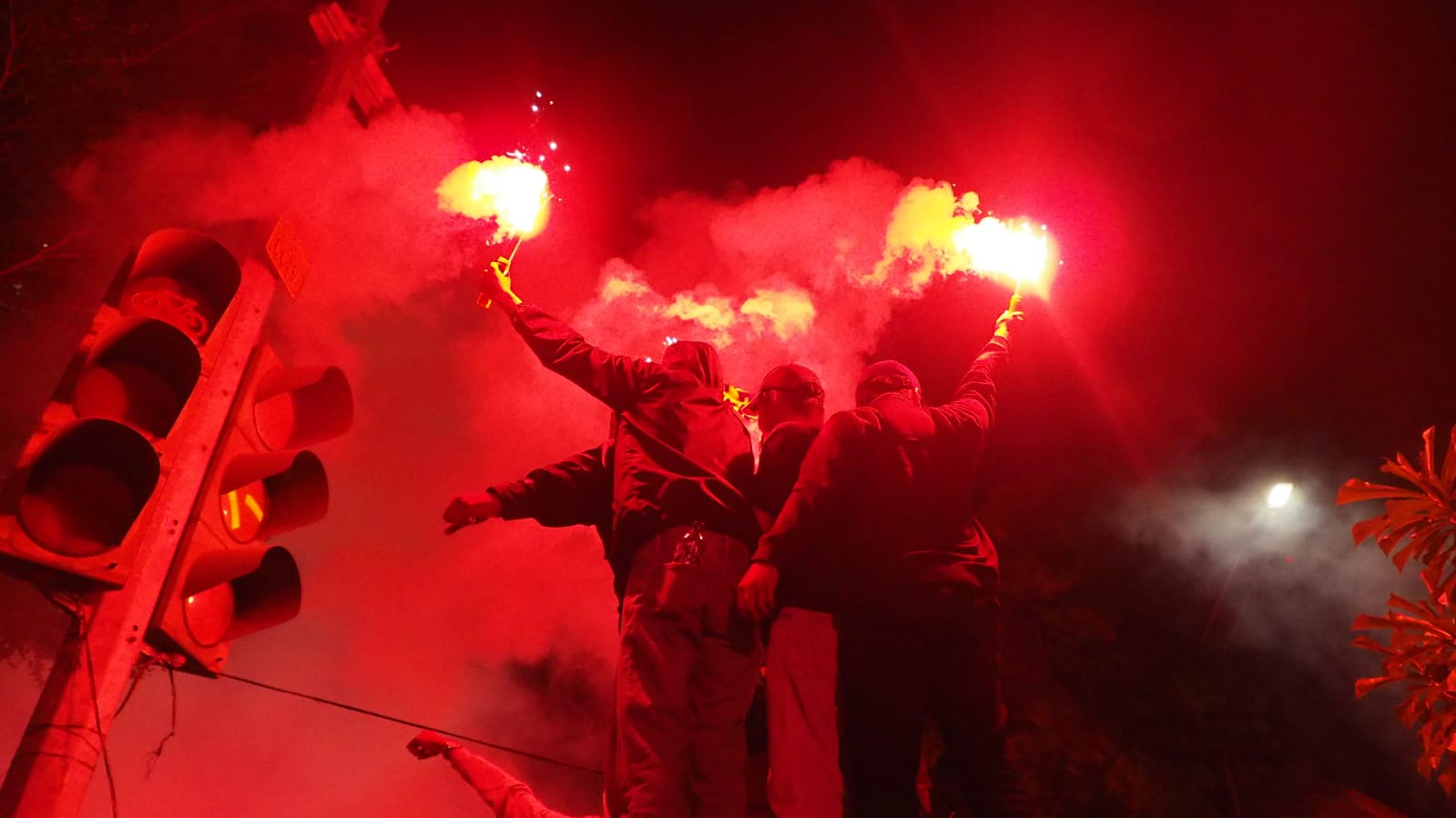 Terlihat ribuan suporter memadati Bundaran Gladag hingga Simpang Gendengan mengikuti pesta flare (suar) dan kembang api. Tepat pukul 00.00 WIB, ribuan soprter Persis Solo kompak menyalakan flare berwarna dan kembang api.