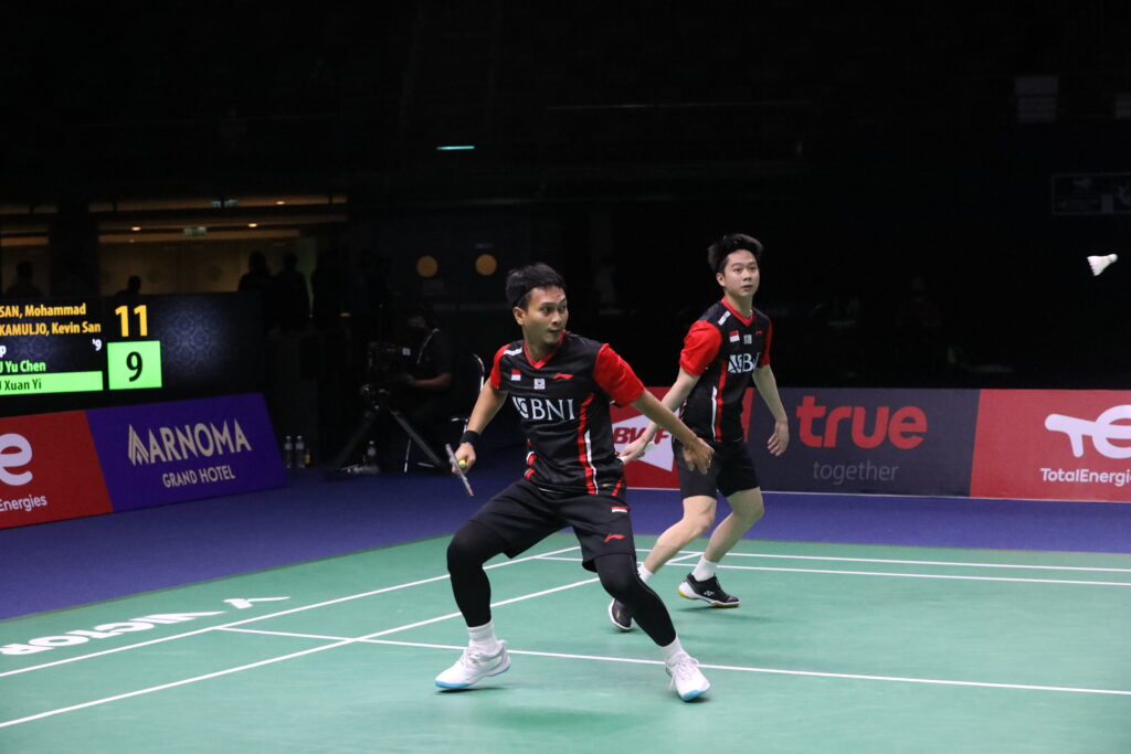 Poin kedua didapatkan dari Kevin Sanjaya/Mohammad Ahsan, ganda racikan baru ini juga sukses menyumbang angka usai kalahkan Liu Yu Chen/Ou Xuan Yi dengan skor  21-17,  21-16.
