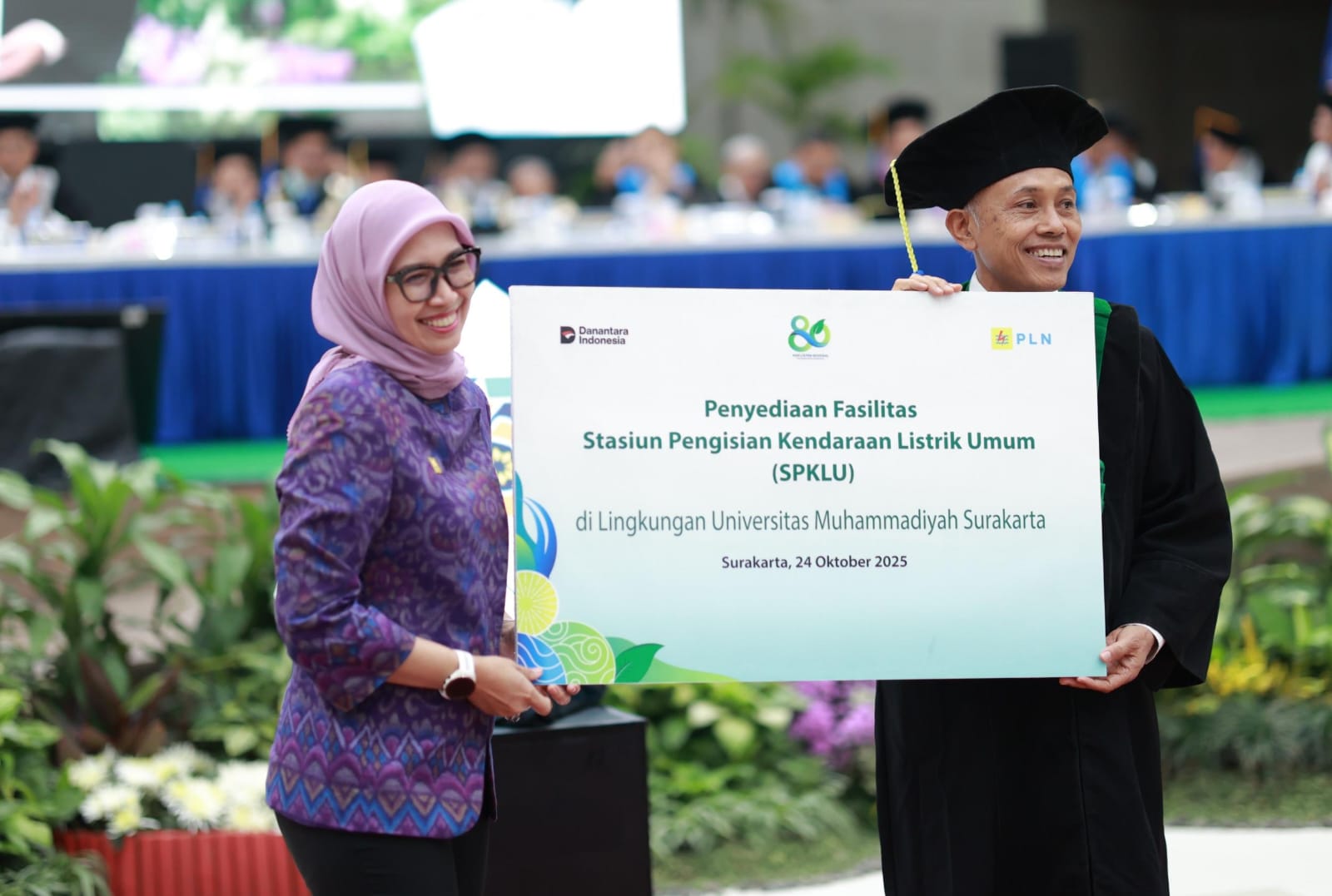 Penyerahan dilakukan langsung oleh Direktur Distribusi PLN, Arsyadany Ghana Akmalaputri, S.T., M.M., di sela Sidang Terbuka Senat Universitas Muhammadiyah Surakarta pada Jumat (24/10/2025) di Gedung Edutorium KH. Ahmad Dahlan UMS.