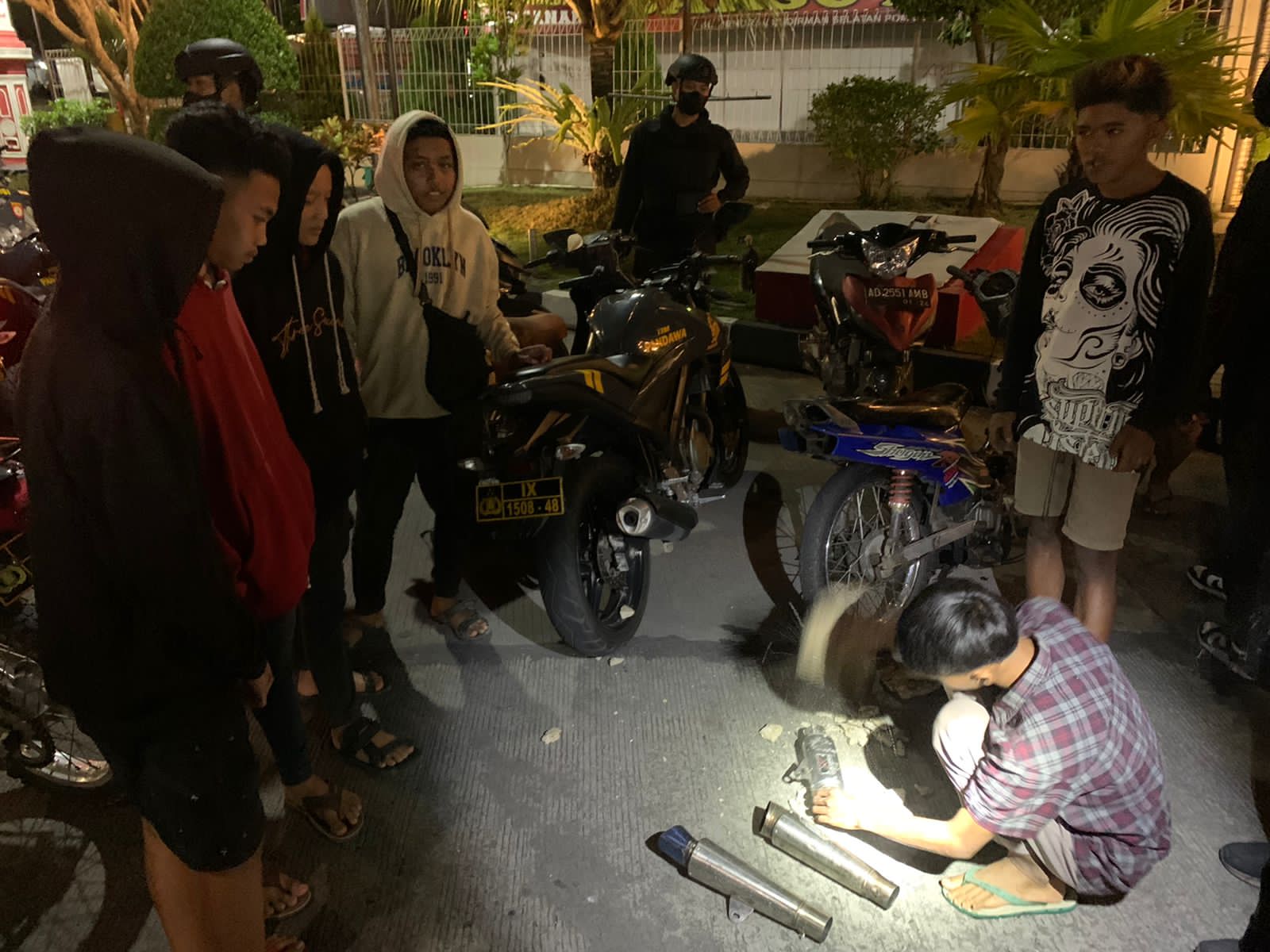 “Untuk memberi efek jera, kami tangkap dan bina. Kami juga perintahkan untuk melepas knalpot brong tersebut. Barang bukti knalpot brong tersebut kemudian kita sita,” ujar Katim Pandawa Ipda Guntur.