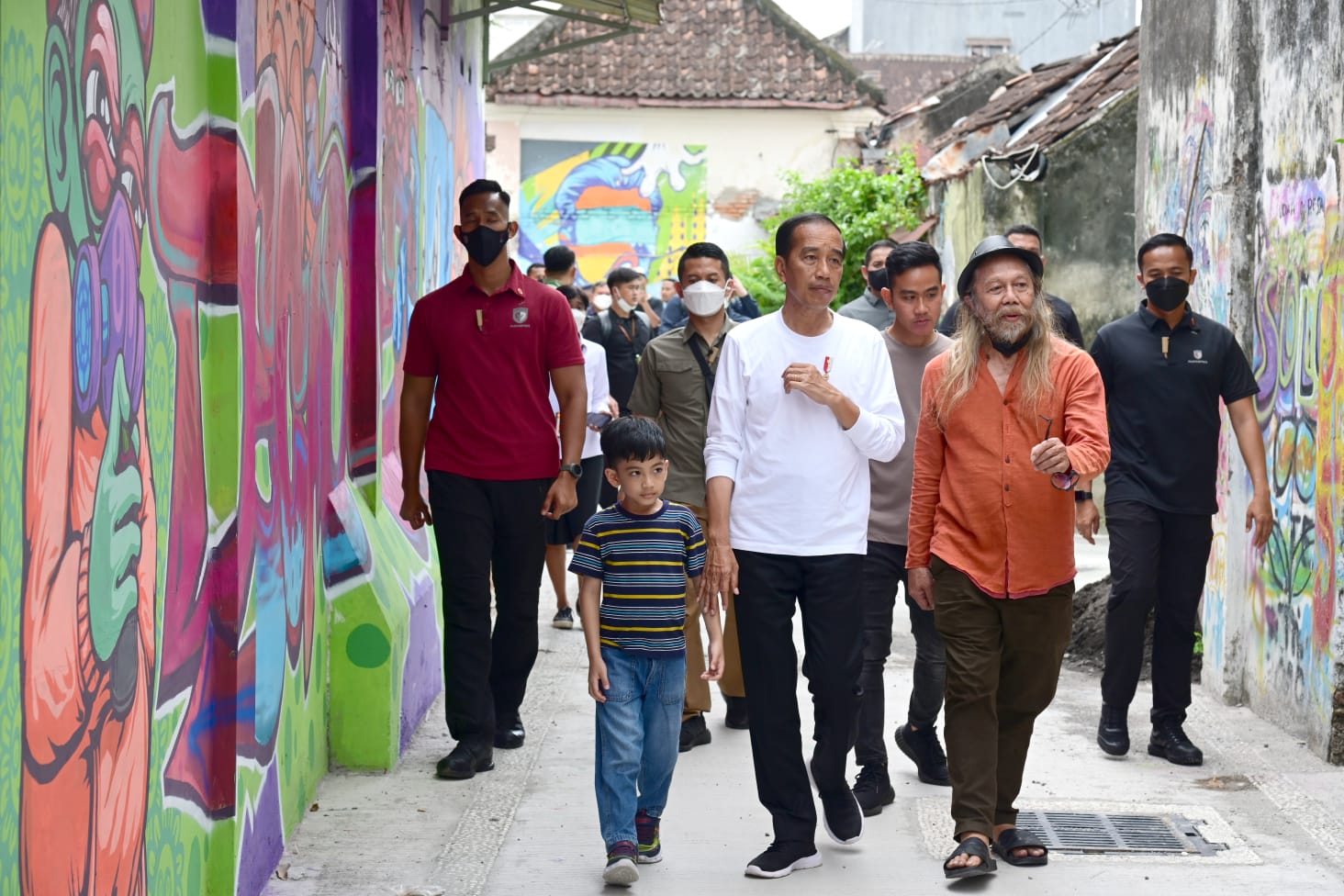 Pada kunjungan Presiden Jokowi ke Art Center, Senin, (23/1/2023) tampak mendampingi Wali Kota Surakarta Gibran Rakabuming Raka bersama putranya Jan Ethes