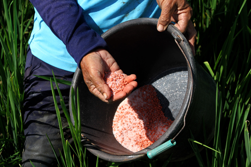 Pupuk subsidi jenis ZA dan Phonska diakuinya berperan dalam pertumbuhan padi berkualitas, jikalau normal padi akan ditaburi pupuk pada hari ke 15 dan 40. Sementara akan siap dipanen sekitar 110 hingga 115 hari.