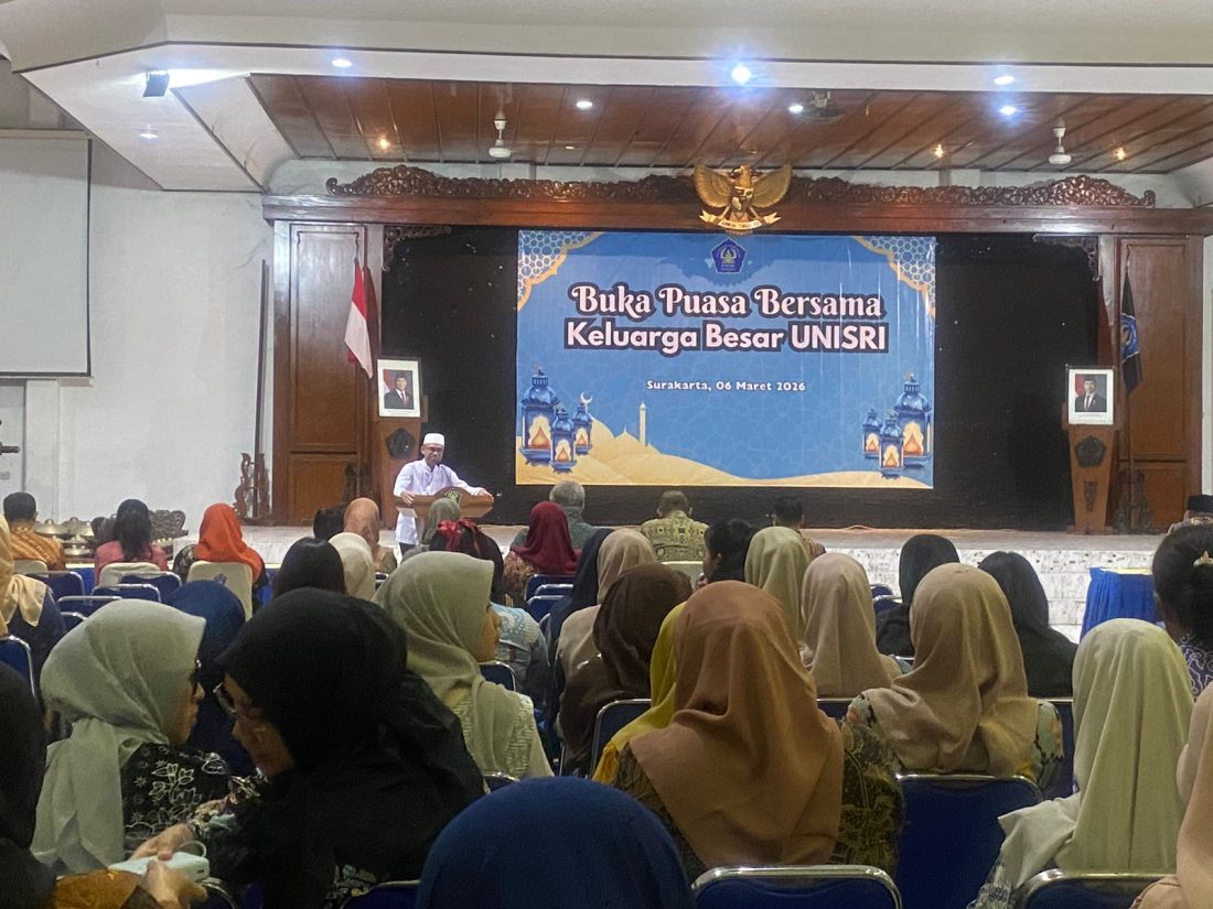 Rektor Unisri, Sutoyo, dalam sambutannya menekankan pentingnya tradisi berbuka puasa bersama sebagai sarana memperkuat kebersamaan di lingkungan kampus.