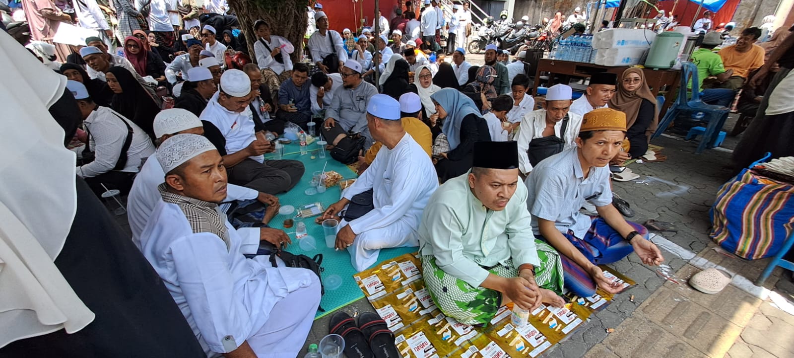 Jemaah perempuan dan laki-laki bercampur menjadi satu. Kebanyakan mereka membentuk gerombolan dari daerah yang sama. Beberapa jemaah tampak khusyuk berdoa dan membaca bacaan Maulid Simtudduror.