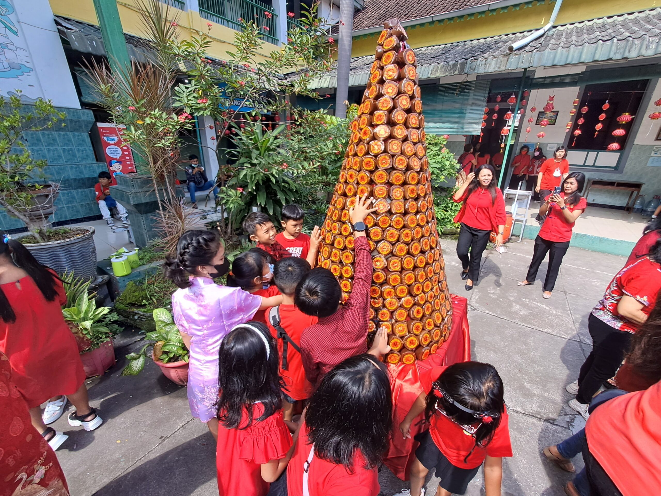 SD Warga Bagikan Gunungan Kue Keranjang