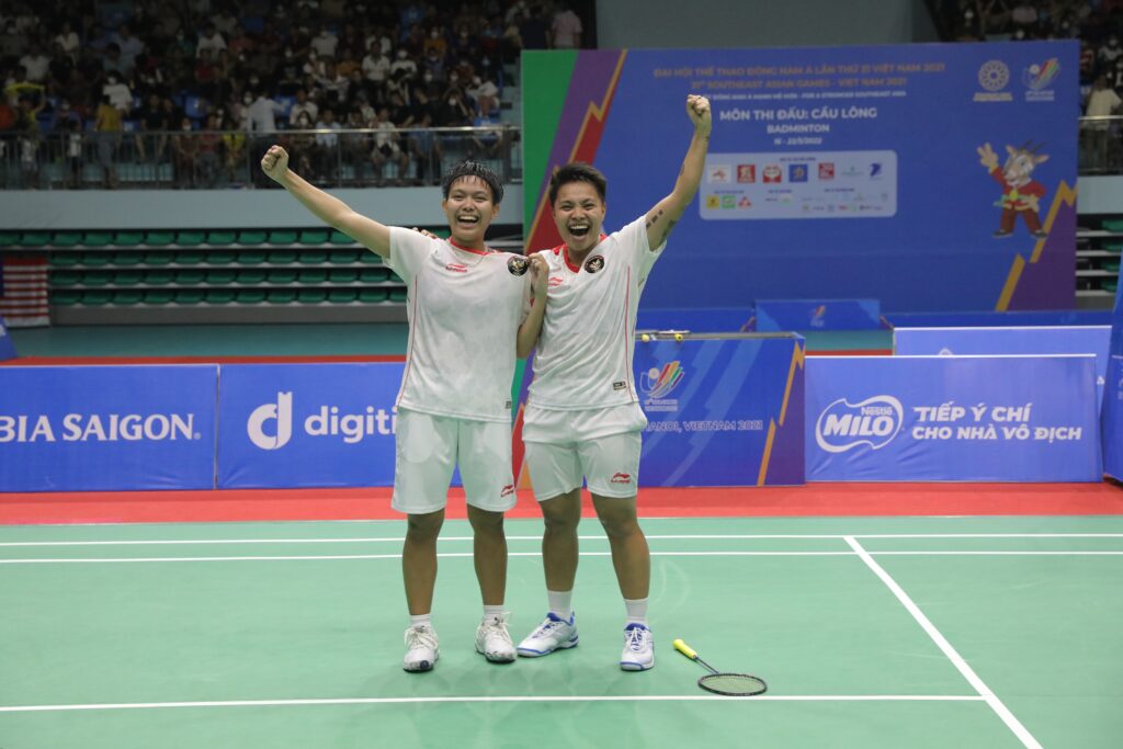 BAC GIANG, MettaNEWS – Pasangan ganda putri Apriyani Rahayu/Siti Fadia Silva Ramadhanti berhasil naik podium tertinggi di ajang bulutangkis SEA Games Vietnam 2021. Mereka menyabet medali emas di nomor perorangan usai mengandaskan perlawanan ganda Thailand, Benyapa Aimsaard/Nuntakarn Aimsaard dua gim langsung 21-17, 21-14.