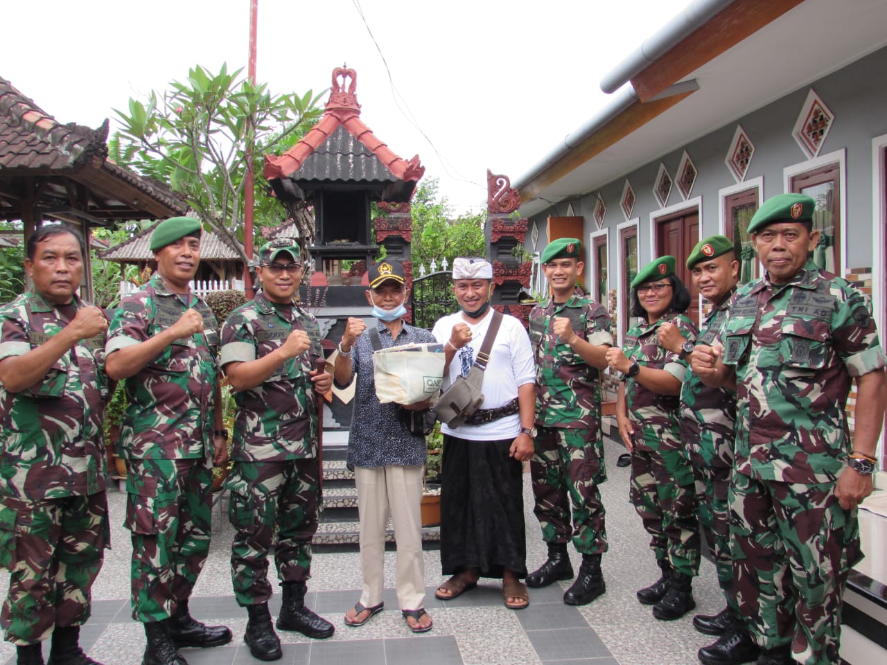 DENPASAR, MettaNEWS – Dandim 1611/Badung Kolonel Inf Dody Triyo Hadi, didampingi Kasdim 1611/Badung bersama segenap Perwira Staf Kodim 1611/Badung menyerahkan bingkisan dan tali asih secara simbolis kepada Veteran dan Warakawuri di wilayah Denpasar dalam rangka peringatan HUT ke-77 TNI di Kediaman Veteran a.n. I Made Puja dengan alamat Jln. Letda Made Putra No. 15 Kec. Denpasar Timur. Senin (10/10/22).