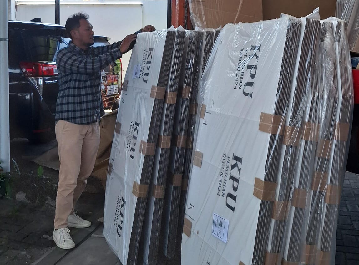 Adapun logistik yang didistribusikan berupa bilik suara yang berjumlah 3.424 dari PT. Santoso Jawi Abadi, Sidoarjo, Jawa Timur yang selanjutnya disimpan di gudang induk KPU Surakarta.