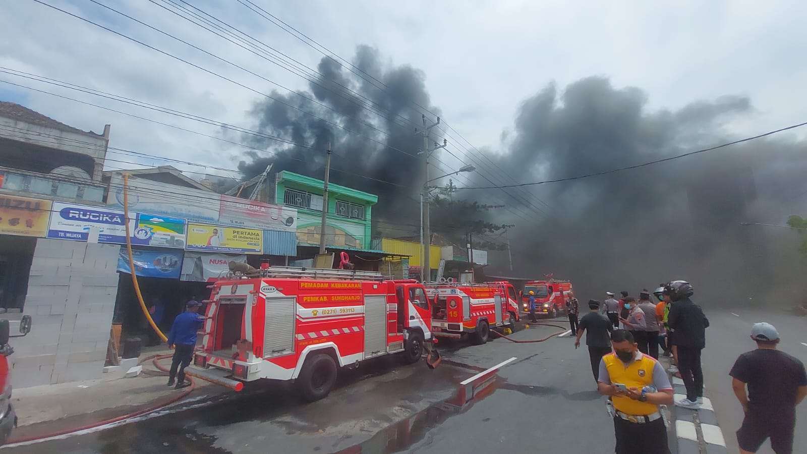 Toko Spare Part dan Ban Motor di Telukan Sukoharjo Terbakar, Asap Tebal Tutupi Jalan Raya