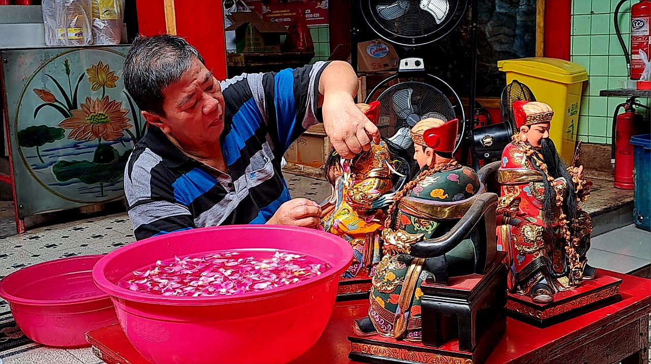 “Seperti tahun-tahun yang lalu kita selalu mengadakan kegiatan untuk menyambut Tahun Baru Imlek. Klenteng Tien Kok Sie selalu didahului dengan bersih-bersih klenteng baik interior, lighting, memandikan para rupang. Semua rupang dan interior di dalam klenteng dalam waktu satu atau dua hari harus selesai dimandikan supaya tidak mengganggu peribadatan umat,” terangnya.
