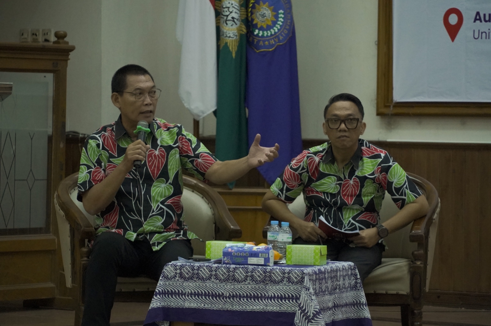 Rektor UMS Prof. Dr. Sofyan Anif, M.Si., menanyakan mengenai pendidikan inklusi, Guru Besar Ilmu Hukum Prof. Dr. Aidul Fitriciada Azhari, M.Hum., menanyakan mengenai demokrasi hukum, dan Prof. Dr. M. Farid Wajdi, S.E, M.M., menanyakan dari sisi ekonomi. Di samping itu, hadir panelis di bidang budaya yaitu Kiai Kusen/Cepu, Ph.D.