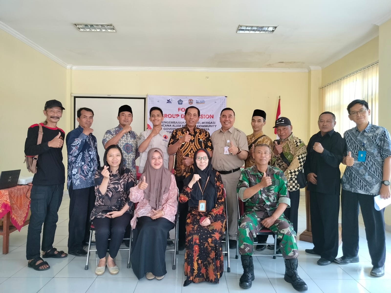 Kegiatan FGD merupakan salah satu rangkaian dalam pengumpulan data penyusunan kajian empiris. Pokok permasalahan yang mereka ambil pada kegiatan ini yakni dengan mengingat korban terbesar dari bencana adalah masyarakat yang tinggal di desa dengan potensi bencana. Maka perlu lakukan upaya-upaya untuk dapat meningkatkan kesadaran dan kapasitas masyarakat. Dalam mengantisipasi kemungkinan bencana yang dapat terjadi, sehingga resiko bencana dapat berkurang.
