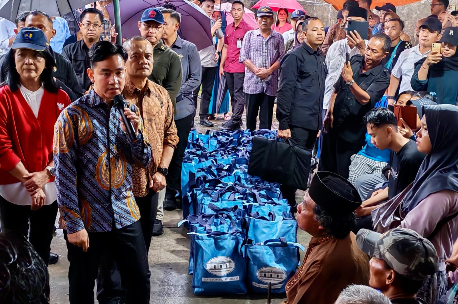 “Keselamatan nomor satu. Hati-hati, di sini banyak anak-anak dan lansia. Minggu lalu saya ke bencana tanah gerak di Tegal, situasinya juga cukup parah. Kalau kondisi seperti ini sangat berbahaya. Yang penting tidak ada korban,” tegas Gibran.
